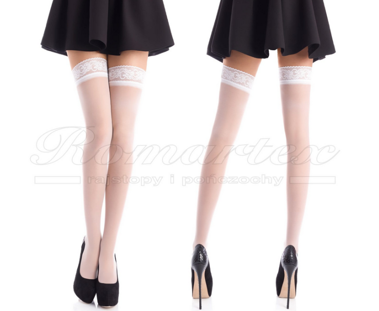 Punčochy v bílé barvě jsou velmi módní, klasický model hladkých punčoch, jsou tenké s hedvábným leskem a příjemné na dotek. Přirozeně zeštíhlují vaše nohy. Vhodné pro nevěsty.