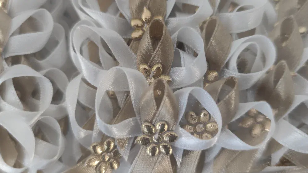 3. Vývazek bílo-béžový se zlatou květinkou
