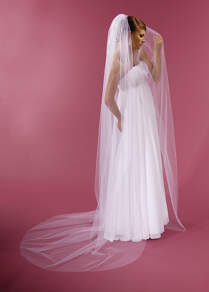 Katedrálový závoj z klasického tylu v barvě bílé i v barvě ivory na hřebínku. Délka 250 cm.