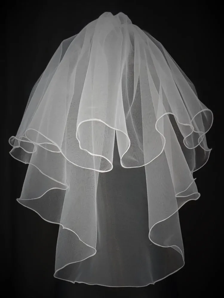 Závoj z jemného pavučinového tylu české výroby zakončený overlockem. Délka závoje 55cm. Závoj je na hřebínku.
